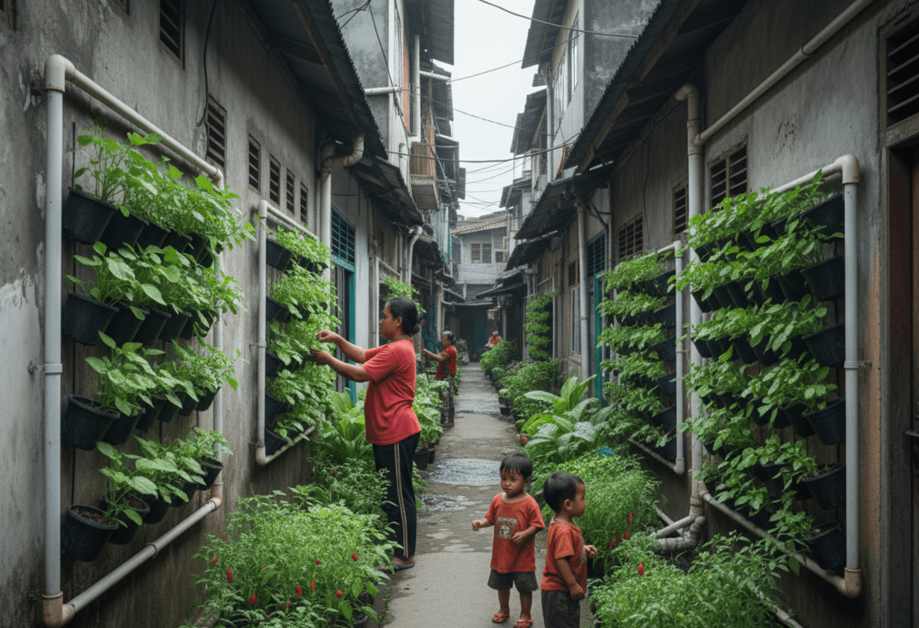Dina grows eggplant, chilies, mustard greens, and raises chickens to ensure her small family has enough to eat. She make sure that there are surplus for barter with the neighbors.