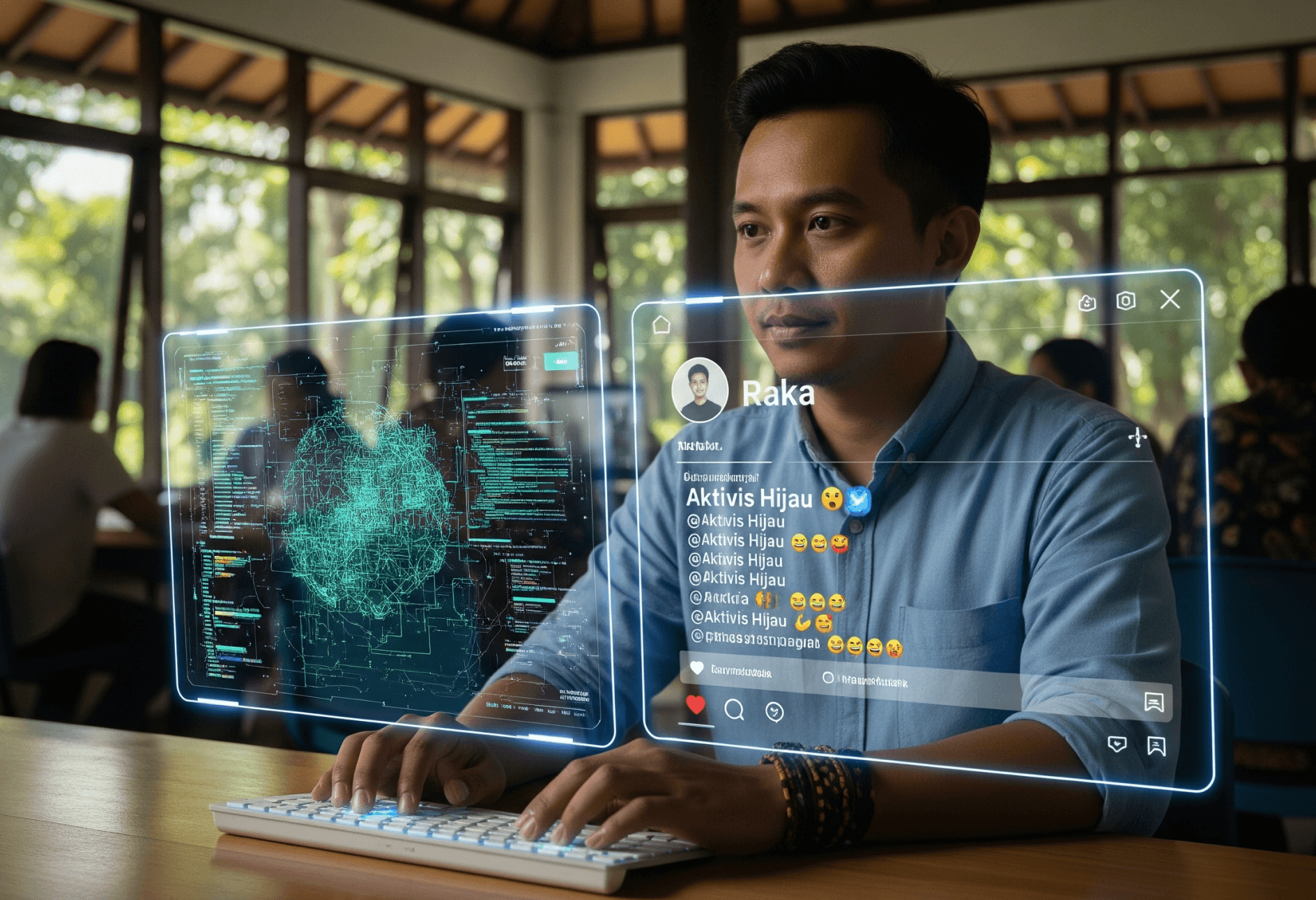 Raka cares about the environmental community and teaches coding. However, his community only sees him as a "green activist."